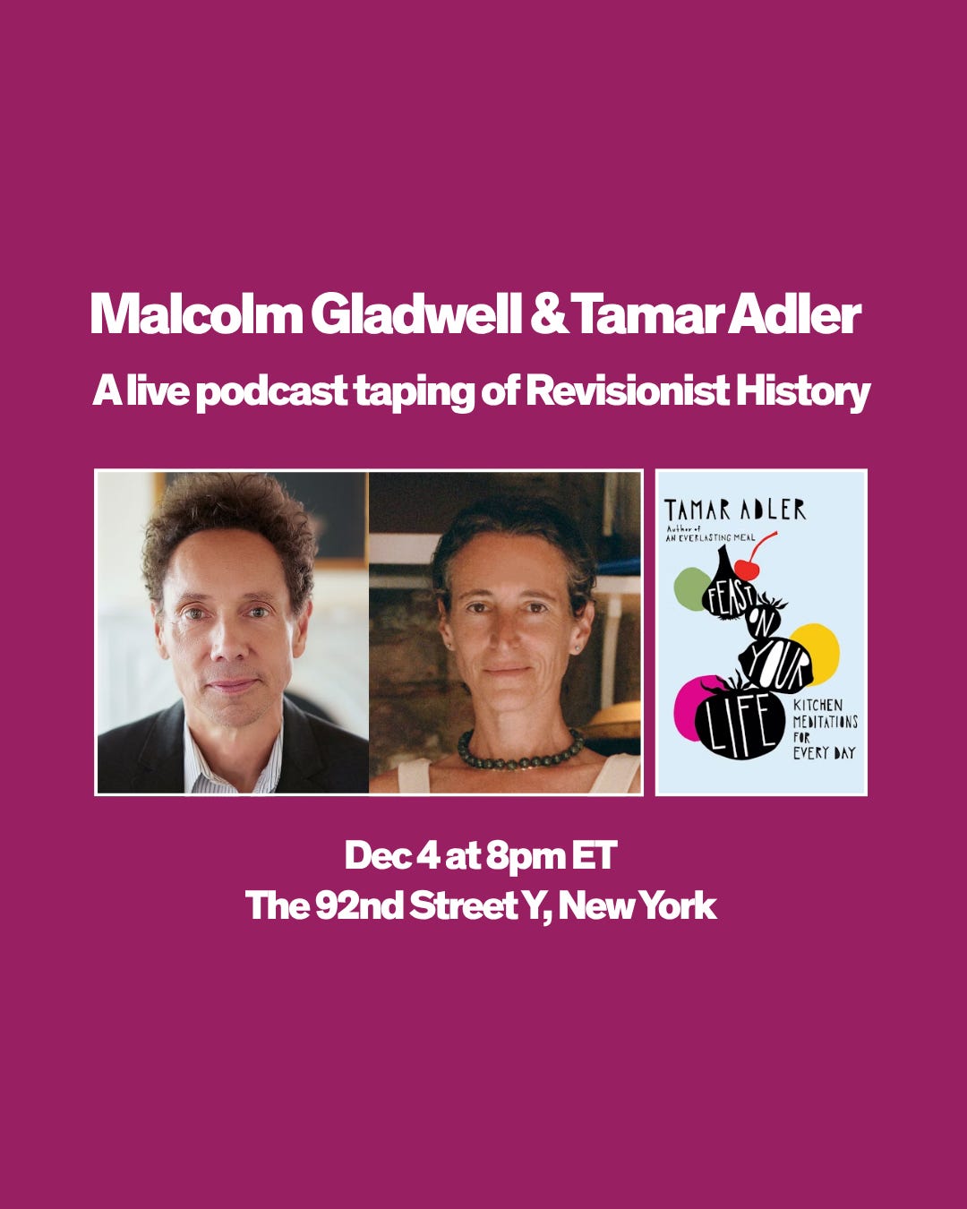 Feast On Your Life is out in the world. The reception has been wonderful. Grab one of the last tickets to see me with Malcolm Gladwell tonight at 92Y in live taping of Revisionist History, or come hear me talk with Lacey Schwartz Delgado tomorrow at Oblong Books!